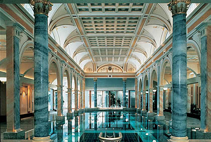 | <スイスの湯に浸かる> スイスは温泉や鉱泉が250種類もあり、大変豊富です。 九州とほぼ同じ大きさのスイスは、大部分が山岳地帯だからです。 これらの地名は、お風呂を意味する言葉の 「バーデン」とか「バン」とかが多いです。 その「バーデン」はスイス最大の都市チューリッヒの 北西約20キロに位置しており、 スイスのバーデンとして温泉地では有名な町です。 チューリッヒから列車を利用して気軽に来れるので、 多くの観光客が訪れています。 古くから湯治湯としての歴史があり、 2000年以上も前のローマ時代の頃より、利用されてきた温泉地です。 その当時、心臓病や気管支炎、神経痛などあらゆる病気に対して 悩む人々が利用し、その効能が評判となって知れわたり、 奇跡を起す「スイスの水」と呼ばれていました。 これが噂となり、難病に悩む多くの人がまた人を呼んで 治療のために集まるようになり、 浴場や湯治施設が作られるようになりました。 現在も当地では、温泉地としての歴史と伝統を守り続けており、 中世のヨーロッパの雰囲気が感じられます。 街中にある公共の温泉センター「テルマル・バーデン」は、 温泉治療を主としており、ここは硫黄泉が1日に100万リットルも、 地下3000メートルから噴出しています。 この水は、スイスの温泉の中で最も多くの ミネラル分を含んでいるといわれていて、消化器官や呼吸器官の病気 あるいは関節炎、リューマチにも効果があるそうです。 メディカルセンターも併設されてあり、 専門医師のカウンセリングに基づいた、プログラムが作成されて 事故や手術後のリハビリの他、 スポーツ選手のトレーニングが行われています。 また治療目的以外にも、 2時間ほどのリラクゼーションコースやエステコースなども用意されており、 屋外プールで周囲の大自然に溶け込みながらの、 水中体操や各アクアビクスを楽しむことができます。 プールの脇にはリマト川が流れていて、 その周囲にブドウ畑が広がっている大自然の光景を 楽しみながら入浴できる所です。 バート・ラガッツは温泉地としても有名ですが、 アルプスの少女ハイジ物語に出てくる町としても知られています。 ここには温泉施設が二つあります。 ひとつは、グランドホテル内にあるヘレナバスで、 宿泊者専用です。内装は豪華で宮殿のようです。