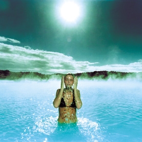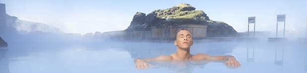 レイキャヴィークから車で約40分 (ケプラヴィーク国際空港から15分) にある広大な温泉リゾートです。 ここは自然が創造した温泉ではなく、 地熱エネルギーを利用して人工的に造られたものです。 スヴァルトセンギ地熱発電所のポンプが地表下2kmから汲み出す、 ミネラルを豊富に含んだ熱水 (240℃)が 広大な人工温泉となっています。 この高温度の熱水は、一方で電気エネルギーを産み出し、 他方では真水を暖めるという二つの働きをしています。 豊富なケイ素、塩分やその他多くの成分を含んだ使用済みの温水は 約70℃の温度で流れ出て、ブルーラグーンに貯えられます。 広大なラグーンの中で、観光客の入浴が許されるスペースは、 以前は約2,400平方キロメートルでした。 1999年5月に新しい施設が建設されて、 新たに2,700平方キロメートルが追加され、 その広さは従来の倍以上の5,000平方キロメートルとなり、 名実ともに世界最大級の露天風呂になりました。 新しくオープンしたメイン・ハウスは、そのセンターにはレストラン、 着替え室、カフェーなどが備わったモダンで清潔な装いで、 特にラグーン側の壁がガラスとなっている為に、 入浴しない場合でもソフトドリンクを飲みながら、 広大なブルーラグーンの全容を眺めることができます。 この新施設のオープンで、一度に従来の3倍に相当する 700人もの観光客が入浴を楽しめるようになりました。 新しい入浴ゾーンでは、安全の為に、深さが1.4mまでと制限されており、 又、水温はコンピュータ制御により37〜39℃に維持されているので、 通年通して気持ちよく楽しめます。 またここには皮膚病専門の医療施設があり、 温泉に含まれる酸性成分の皮膚浄化作用を 利用した治療が行われています。 ここの泥は美容にも良いことで知られていて、数種類のオイルと 合わせたマッサージが行われています。 如何ですか? 一風呂浴びにアイスランドへ出かけましょう! |