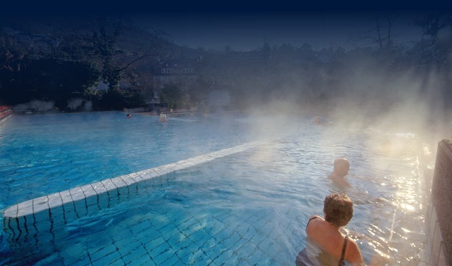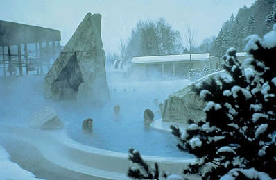 | <スイスの湯に浸かる> スイスは温泉や鉱泉が250種類もあり、大変豊富です。 九州とほぼ同じ大きさのスイスは、大部分が山岳地帯だからです。 これらの地名は、お風呂を意味する言葉の 「バーデン」とか「バン」とかが多いです。 その「バーデン」はスイス最大の都市チューリッヒの 北西約20キロに位置しており、 スイスのバーデンとして温泉地では有名な町です。 チューリッヒから列車を利用して気軽に来れるので、 多くの観光客が訪れています。 古くから湯治湯としての歴史があり、 2000年以上も前のローマ時代の頃より、利用されてきた温泉地です。 その当時、心臓病や気管支炎、神経痛などあらゆる病気に対して 悩む人々が利用し、その効能が評判となって知れわたり、 奇跡を起す「スイスの水」と呼ばれていました。 これが噂となり、難病に悩む多くの人がまた人を呼んで 治療のために集まるようになり、 浴場や湯治施設が作られるようになりました。 現在も当地では、温泉地としての歴史と伝統を守り続けており、 中世のヨーロッパの雰囲気が感じられます。 街中にある公共の温泉センター「テルマル・バーデン」は、 温泉治療を主としており、ここは硫黄泉が1日に100万リットルも、 地下3000メートルから噴出しています。 この水は、スイスの温泉の中で最も多くの ミネラル分を含んでいるといわれていて、消化器官や呼吸器官の病気 あるいは関節炎、リューマチにも効果があるそうです。 メディカルセンターも併設されてあり、 専門医師のカウンセリングに基づいた、プログラムが作成されて 事故や手術後のリハビリの他、 スポーツ選手のトレーニングが行われています。 また治療目的以外にも、 2時間ほどのリラクゼーションコースやエステコースなども用意されており、 屋外プールで周囲の大自然に溶け込みながらの、 水中体操や各アクアビクスを楽しむことができます。 プールの脇にはリマト川が流れていて、 その周囲にブドウ畑が広がっている大自然の光景を 楽しみながら入浴できる所です。 バート・ラガッツは温泉地としても有名ですが、 アルプスの少女ハイジ物語に出てくる町としても知られています。 ここには温泉施設が二つあります。 ひとつは、グランドホテル内にあるヘレナバスで、 宿泊者専用です。内装は豪華で宮殿のようです。